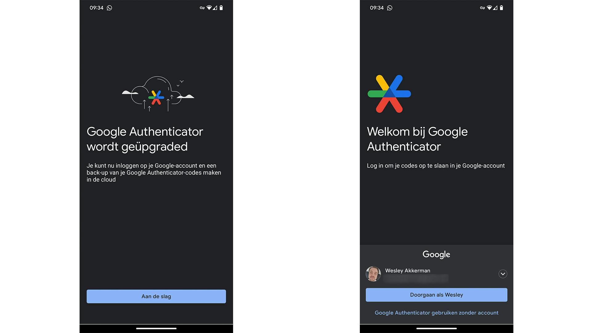 Wanneer je de functie activeert, dan synchroniseert Google die eenmalige codes dus via de cloud. Zodoende heb je er altijd toegang toe (mits je kunt inloggen op je Google-account, waar je misschien ook tweestapsverificatie voor ingesteld hebt). Zodra je de update hebt ontvangen, zie je dat wanneer je Google Authenticator opent. In beeld staat de melding dat de optie beschikbaar is, evenals een knop die het proces initieert. Je hoeft alleen aan te geven dat je een (bestaand) Google-account wilt gebruiken voor de back-ups. Met twee keer tikken heb je het proces helemaal voltooid.
