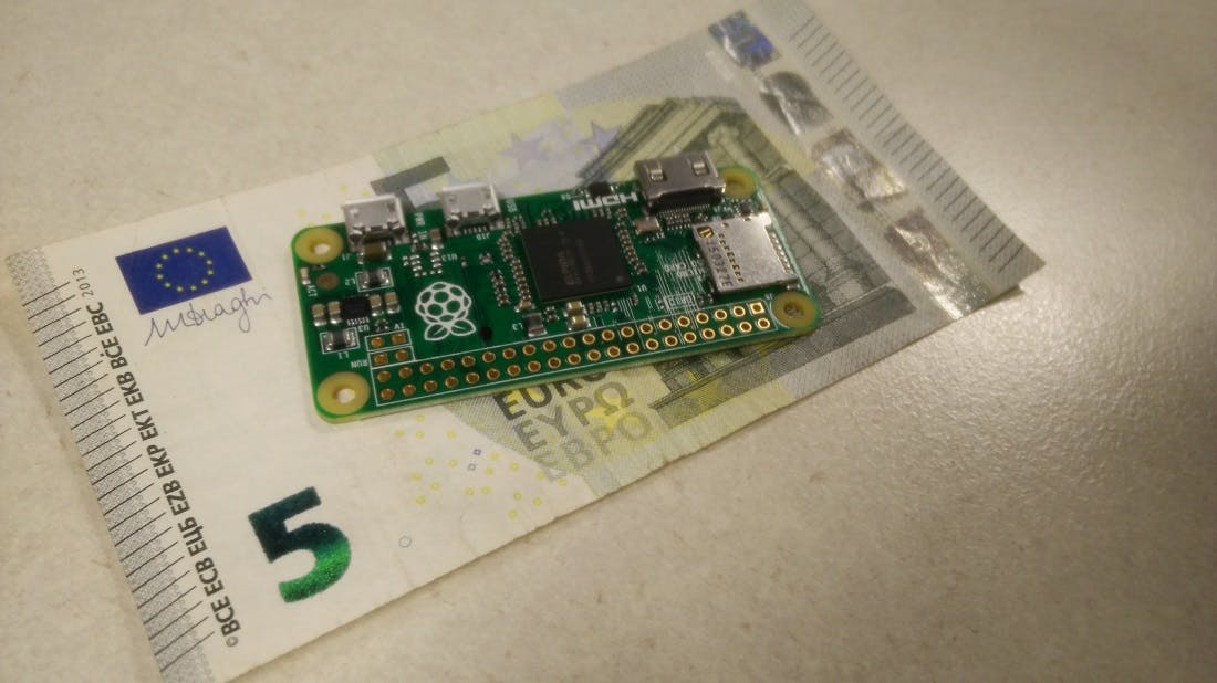 Natuurlijk valt de grootte van de Pi Zero meteen op, maar dat is volkomen terecht. De Zero is namelijk echt, echt, écht heel erg klein. Hier is de Pi naast een biljet van 5 euro: