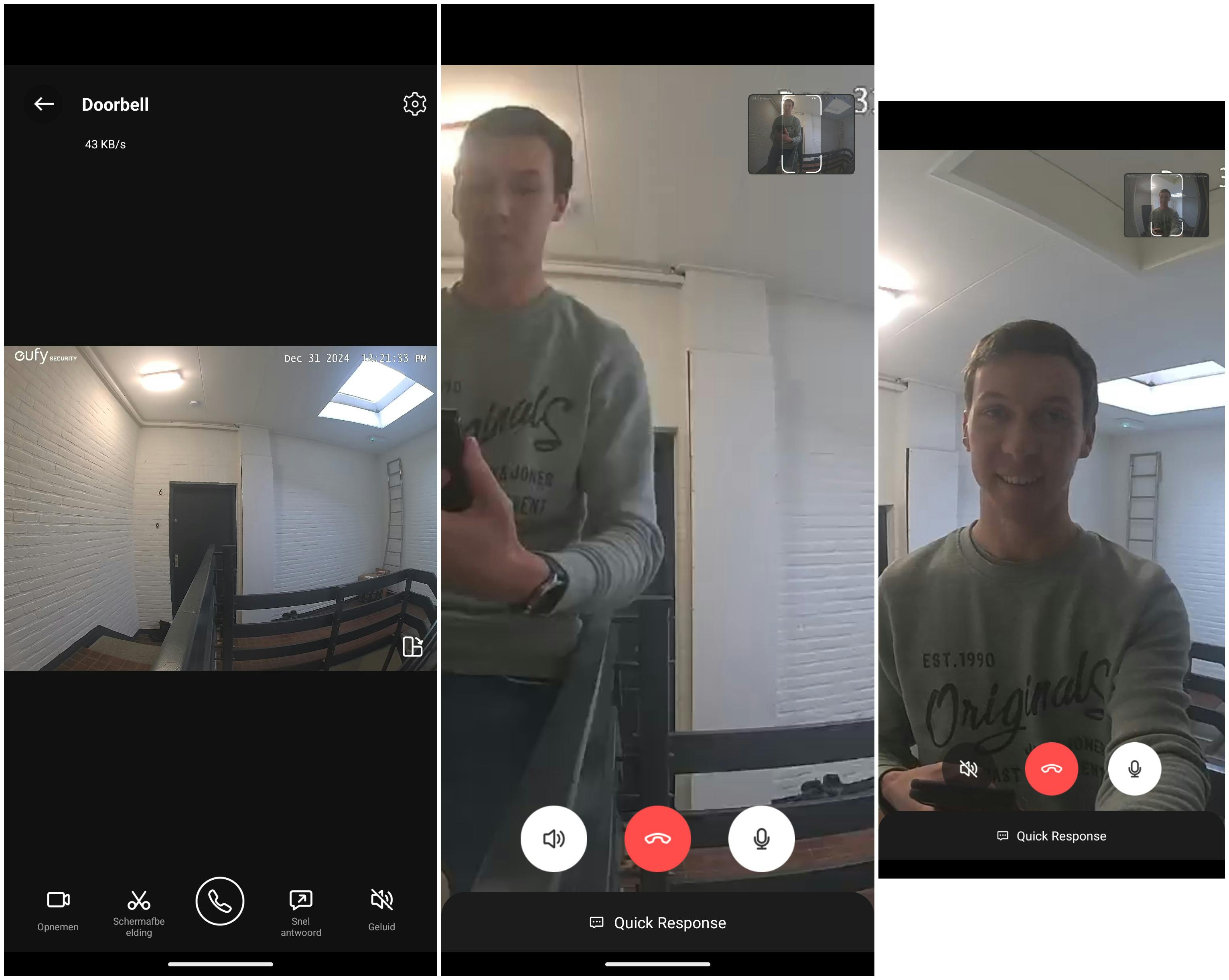 Videobeelden neemt de Eufy Videodeurbel C31 op in wat de fabrikant '2K FHD' noemt. Die resolutie is wat hoger dan Full-HD-resolutie maar in de praktijk bij voldoende licht niet bijster indrukwekkend. In het donker maakt de bel prima opnamen, al tonen duurdere videodeurbellen scherper (kleuren)beeld. Dat kan een aandachtspunt zijn als je een videodeurbel ook wilt gebruiken om inbrekers af te schrikken of anders in elk geval duidelijk in beeld te brengen. Houd er ook rekening mee dat deze Eufy-bel filmt in 16:9-resolutie, wat een rechthoek is en de grond bij je deur niet in beeld brengt. Je ziet dus niet of een pakketje voor de deur is gezet.