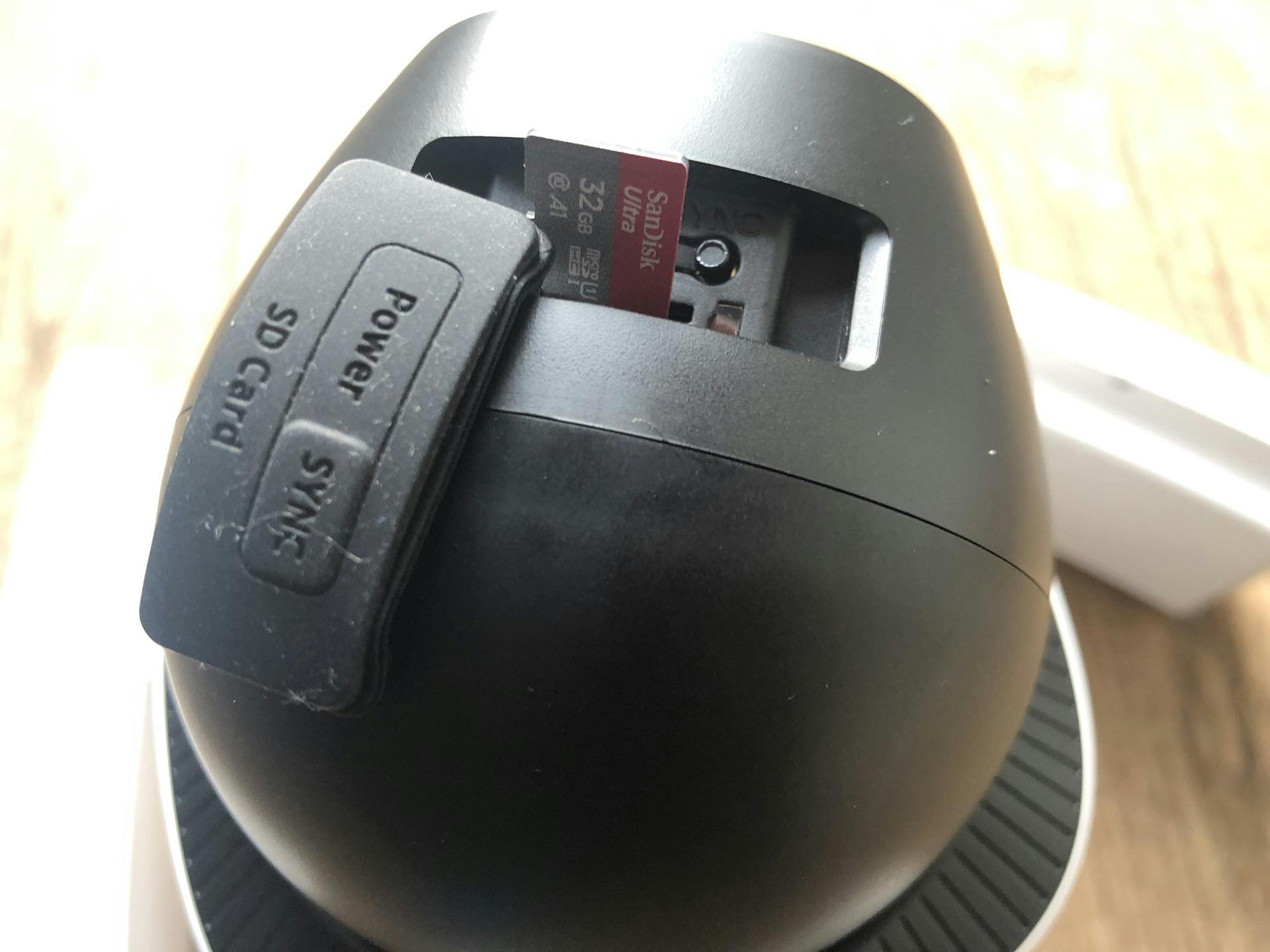 Ten opzichte van batterycams heeft de E340 een belangrijk voordeel, want je kunt hiermee continu opnemen. Je weet hierdoor zeker dat je geen gebeurtenissen mist. Continu opnemen kan op verschillende manieren. De laagdrempeligste optie is door een microSD-kaart van maximaal 128 GB in de behuizing te plaatsen. In het camerahoofd bevindt zich achter een rubberen klepje namelijk een geheugenkaartslot. Jammer genoeg is een microSD-kaart hierdoor wel erg kwetsbaar voor diefstal. Voor 24/7 opnemen is een koppeling met een geschikte NAS via het rtsp-protocol een betere optie. Houd hierbij wel rekening met een maximale resolutie van 1920 × 1080 pixels. Tot slot kun je beelden ook nog in de cloud opslaan. Dat vereist wel een betaald abonnement.