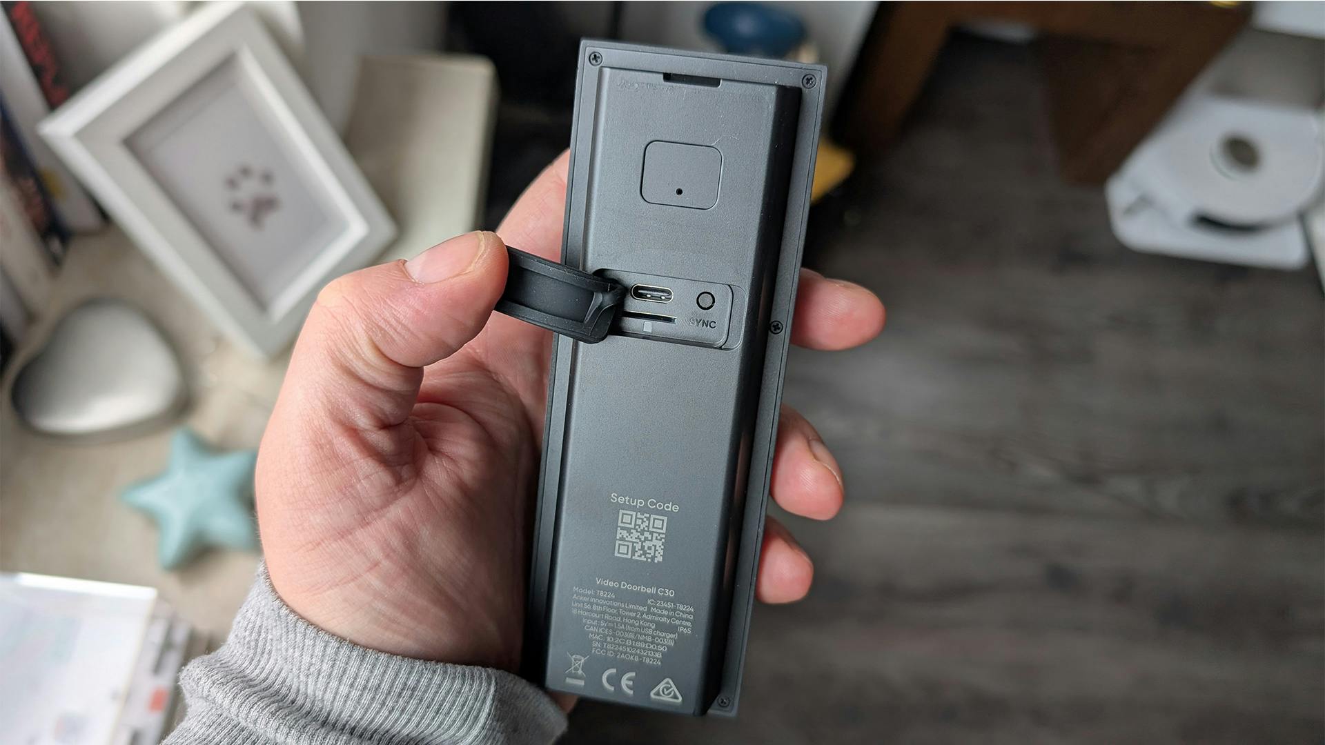 Opladen gaat gelukkig via een usb-c-kabel. Het nadeel van dit systeem is dat je daarvoor de complete deurbel moet verwijderen, en ook de achterkant met een pin moet losmaken om erbij te komen. Geen vreemd principe gezien de prijs, maar wel een vervelend taakje. De fabrikant belooft een gebruikersduur van drie maanden, dus dit moet je zeker vier keer per jaar doen. Opladen duurt zes uur – dan is de deurbel dus ook zes uur buiten gebruik.
