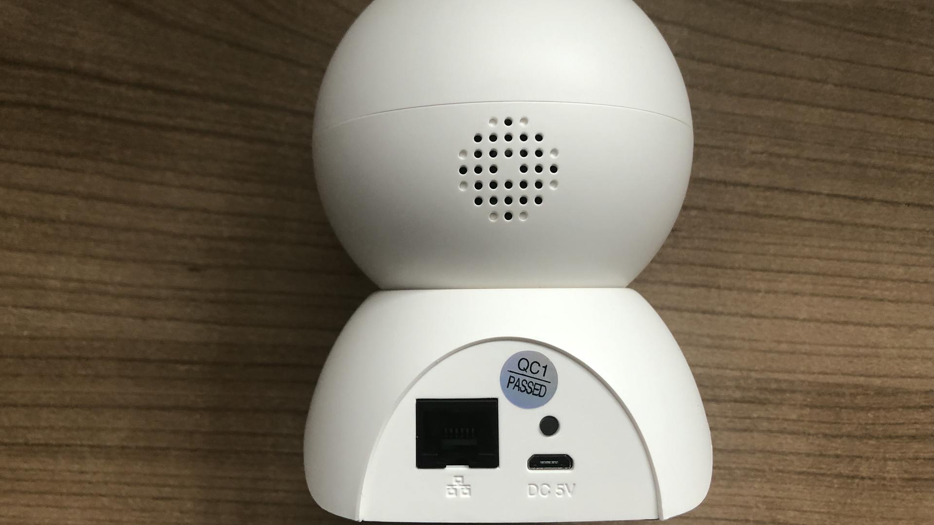 De behuizing bestaat volledig uit kunststof. Die is relatief kwetsbaar, dus laat de camera tijdens de montage beslist niet vallen. Overigens had de afwerking wel iets netter gekund. Zo bevat de ronde constructie in het midden een opvallende naad. Aan de achterkant treffen we een speaker, stroomingang en ethernetpoort. Met name laatstgenoemde aansluiting is opvallend, want veruit de meeste beveiligingscamera’s in deze prijsklasse ondersteunen alleen wifi. Bepaal of je de Foscam X5 op een draadloos of bekabeld netwerk wilt aansluiten. De wifi-ondersteuning beperkt zich tot 2,4GHz-netwerken (dus geen 5 GHz).