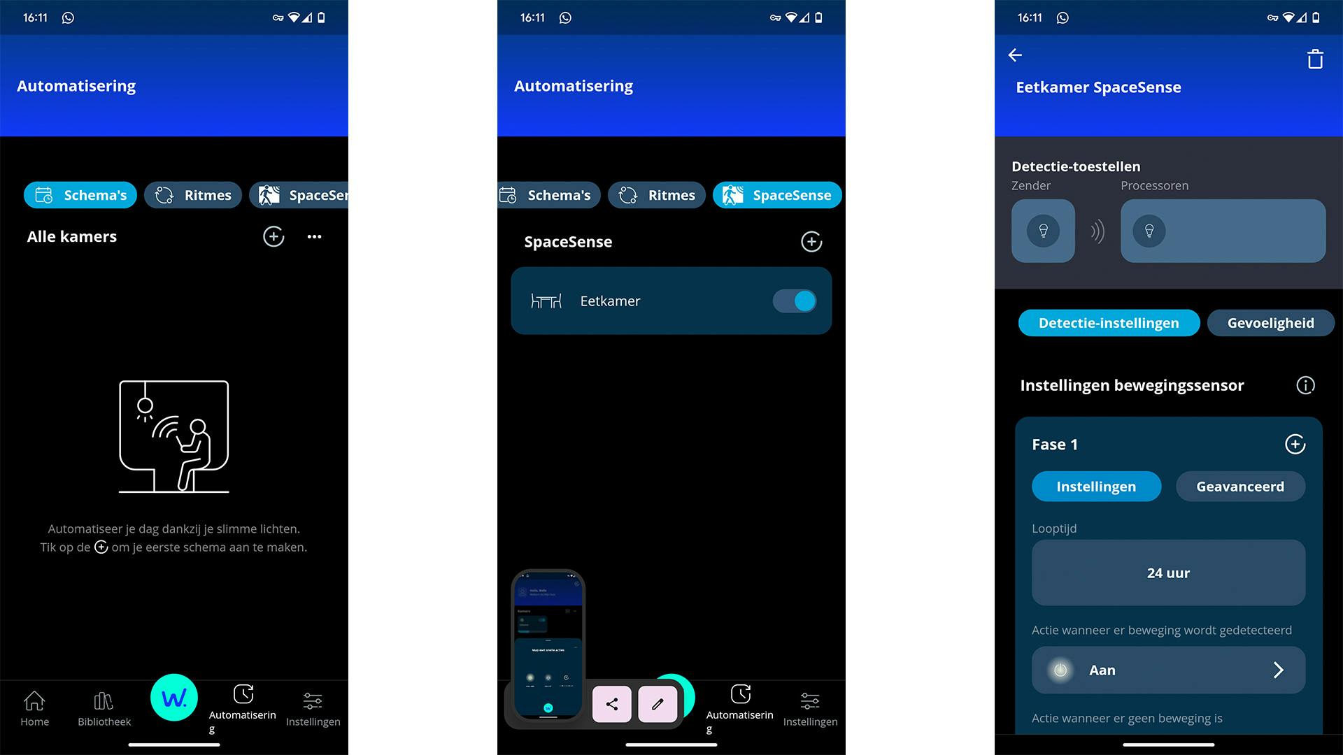 Nu speelt de Ziggo-router die we hier gebruiken daar mogelijk een rol in. Dit is een gewone router die je bij een standaardinternetabonnement krijgt, een vrij veelvoorkomende thuissituatie. We wilden het ook per se met een mesh-systeem testen, omdat het ook zou kunnen zijn dat alles wél werkt. Wiz geeft echter geen garantie en laat je het zelf uitvogelen. Ja, installeren, lampen bedienen en beelden opvragen, werkt soepel en snel, maar de verschillende wifipunten zijn ook in optima forma. Maar, daarna SpaceSense activeren lukt dus niet.