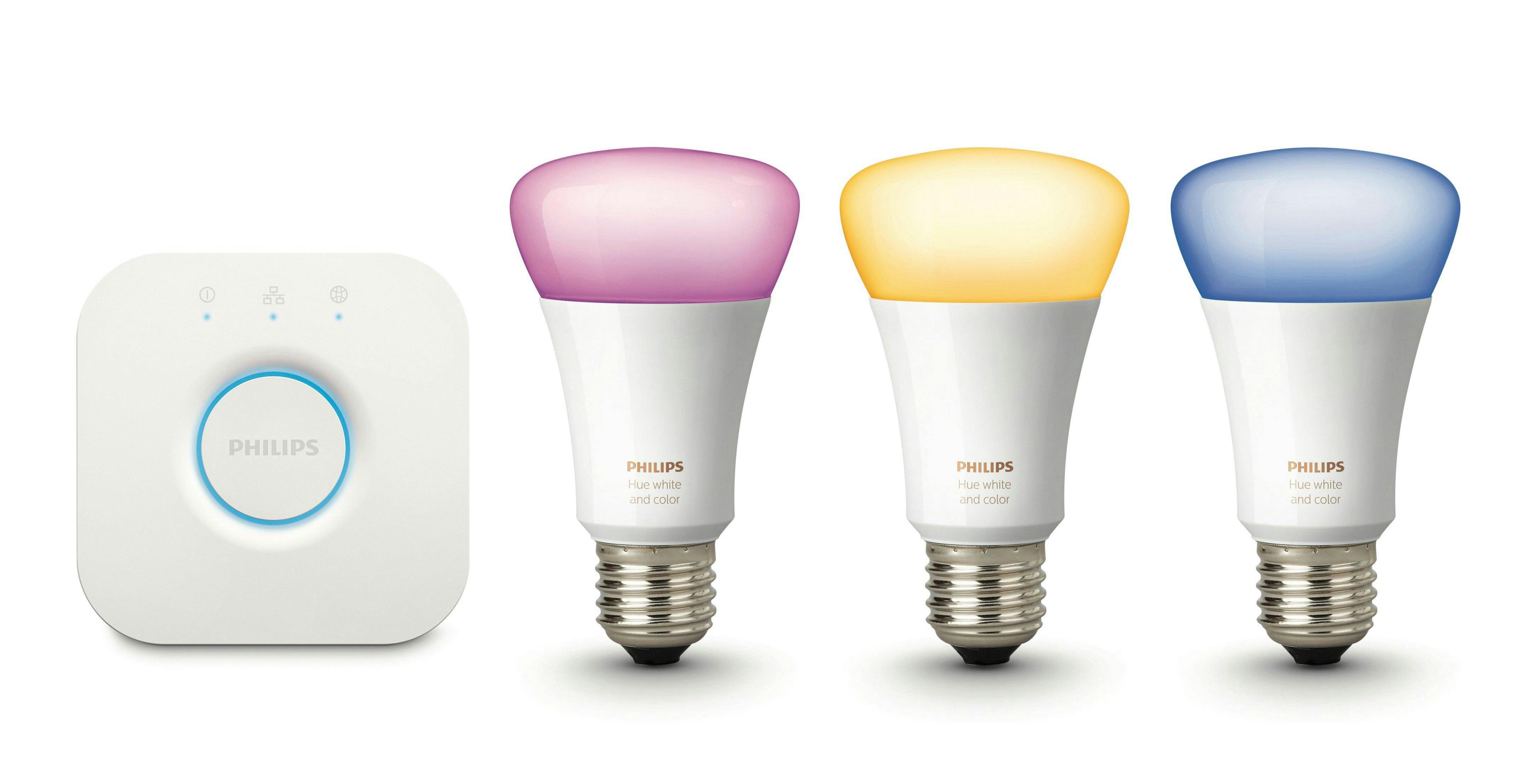 Uiteraard mag de pionier op het gebied van slimme verlichtingssystemen niet ontbreken. Als beginpunt is de White and color ambiance Starterkit E27 (169 euro) prima geschikt. Het pakket bestaat naast de Bridge 2.0-verbindingshub uit drie kleurenlampen met een E27-fitting. Het wattage bedraagt 10 watt met 806 lumen aan lichtstroom. De Bridge 2.0 ondersteunt maximaal vijftig lampen en twaalf overige accessoires, zoals dimmers, bewegingssensors en afstandsbedieningen.