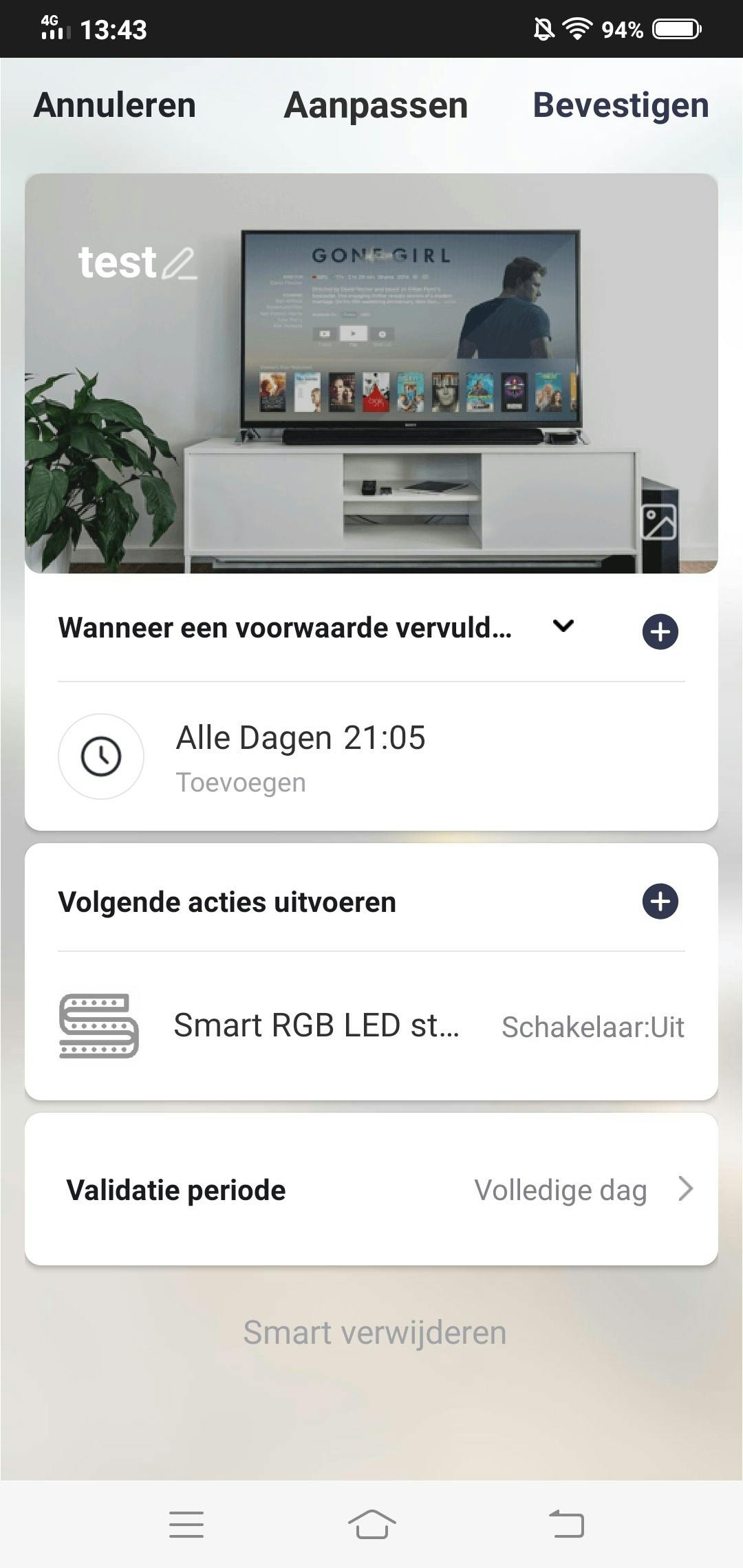 Je hebt veel opties wat betreft scenario’s. Zo kun je de lampen op bepaalde tijdstippen laten aangaan of uitschakelen. Helaas kun je via de app niet instellen dat de lampen in de ochtend bijvoorbeeld langzaam aangaan, waarbij de helderheid langzaam wordt opgebouwd. Dit geldt overigens voor alle lampen uit het assortiment.