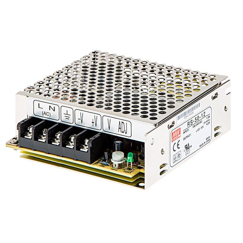 Wat voor voeding je nodig hebt, hangt af van het aantal pixels en de gewenste helderheid. Bij de WS2812B kun je uitgaan van tot 60 milliampère (mA) per pixel. Dat is bij de kleur wit, waarbij alle leds (rood, groen en blauw) zullen branden, en met volledige helderheid. Bij 60 pixels per meter gaat het om 3,6 ampère (A) per meter. Voor 5 meter heb je zodoende een voeding nodig die 18 ampère kan leveren, dus 90 watt in totaal. We raden aan wat extra marge te nemen. Bekend en degelijk zijn bijvoorbeeld de voedingen van Mean Well.