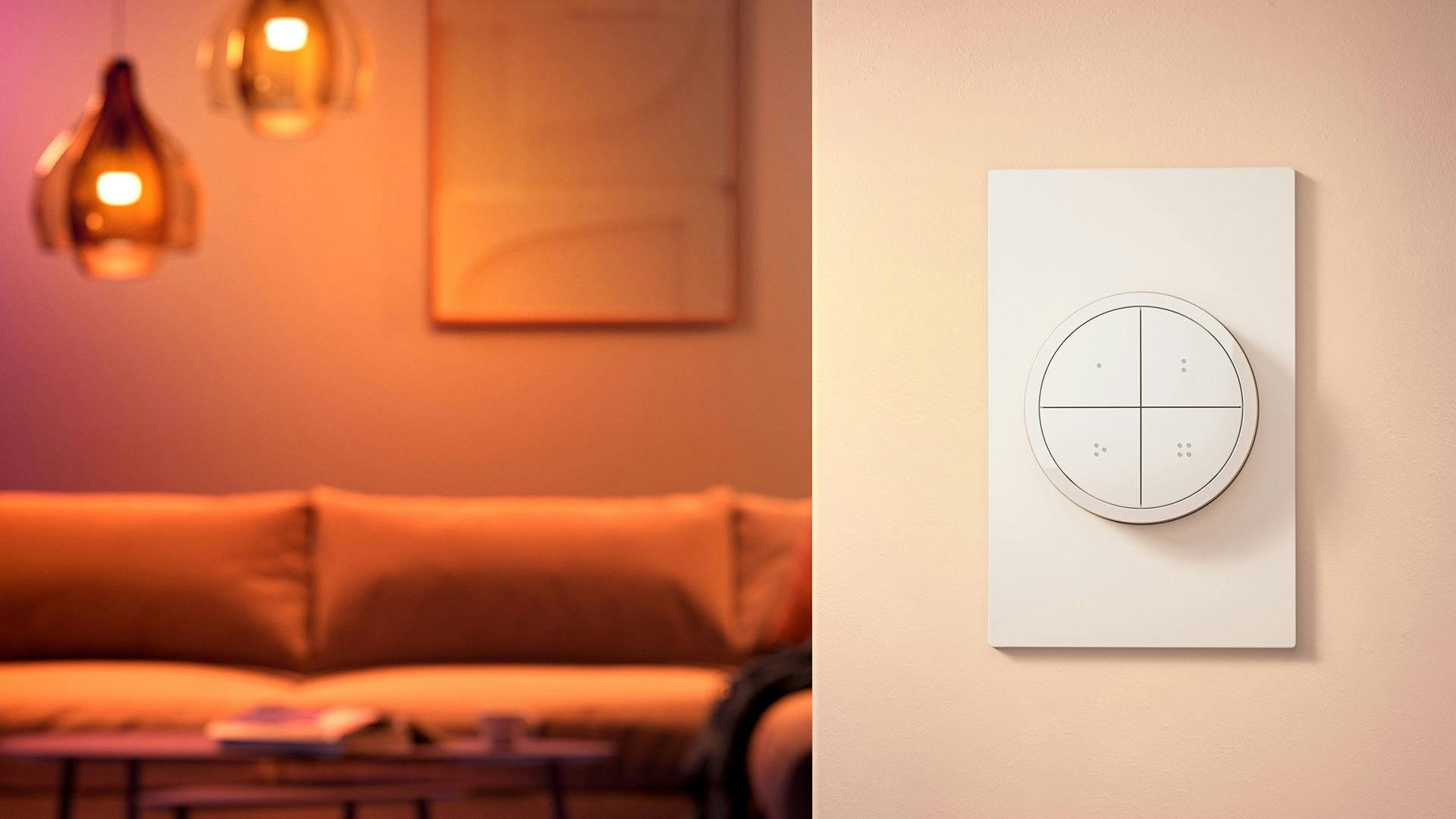 Tot slot introduceert Philips Hue een nieuw slim accessoire, de Philips Hue Tap dial switch, waarmee je je slimme lampen in huis bedient. Die heeft vier knoppen en elke knop kan worden ingesteld om slimme verlichting in maximaal drie afzonderlijke kamers of zones in huis te bedienen. Tik op een knop om onmiddellijk een lichtscène te kiezen of aan te passen.