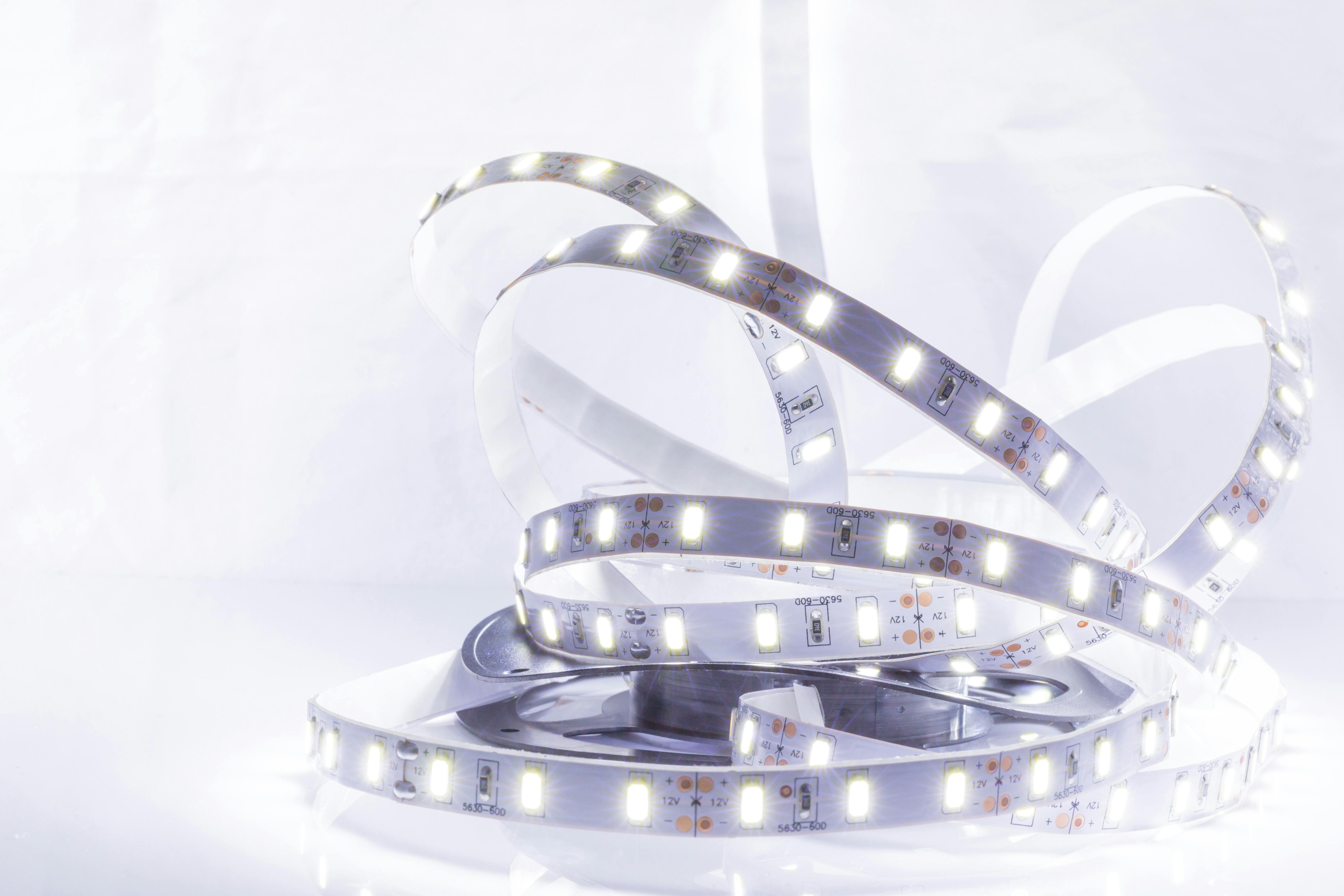 Je hebt bij de meeste ledstrips keuze in het aantal leds per meter ledstrip. Het meest gangbaar zijn 30, 60 of 144 leds per meter. We noemen het leds, maar het zijn in feite SMD-componenten met drie (RGB) of vier (RGBW) leds per component. Uiteraard geeft een dubbel aantal leds een dubbele lichtopbrengst en mooie, egalere verdeling. Maar het stroomverbruik is ook evenredig hoger. De spanning zal door de interne weerstand altijd wat teruglopen. Bij ledstrips die op ‘slechts’ 5 volt werken, is dat eerder een probleem. En dat wordt nog groter als er een groter aantal leds per meter is geplaatst. Daarom kiezen we voor ledstrips met 30 leds per meter. De componenten zijn daarbij met ongeveer 2,8 cm tussenruimte geplaatst. Dat zie je al bijna niet meer op iets grotere afstand, mede dankzij de diffuse kap. De lichtopbrengst zal iets lager zijn, maar je hebt buiten geen zee van licht nodig.