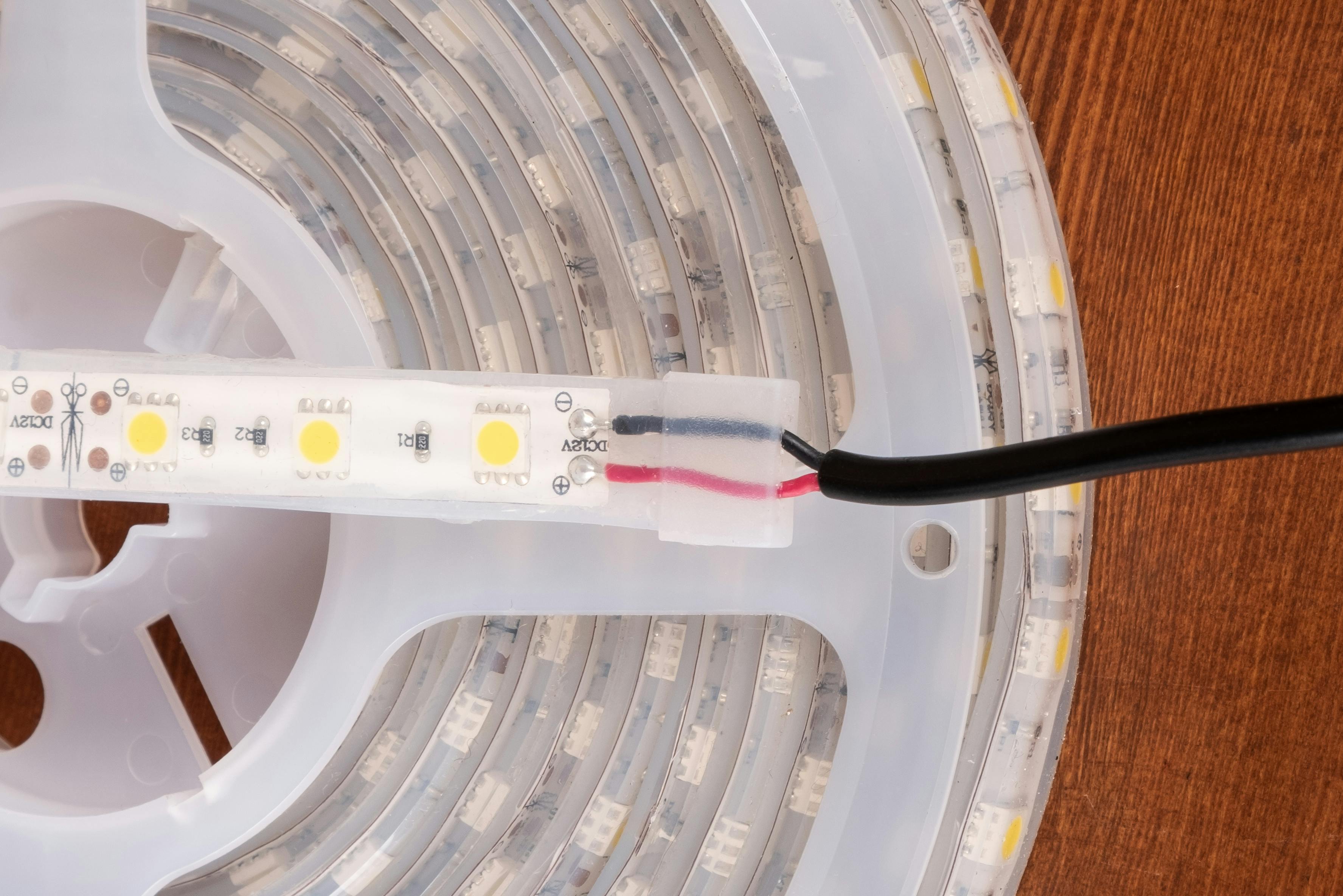 De ledstrips zijn waterdicht volgens de IP67-norm en daarom verhuld in een siliconenbuis. De aansluitingen zelf zijn meestal niet waterdicht. Je kunt ze waterdicht maken door bijvoorbeeld de contacten te lijmen met een lijmpistool. Je kunt de ledstrip op maat knippen op de stippellijn, maar ook dan moet je het weer waterdicht maken!