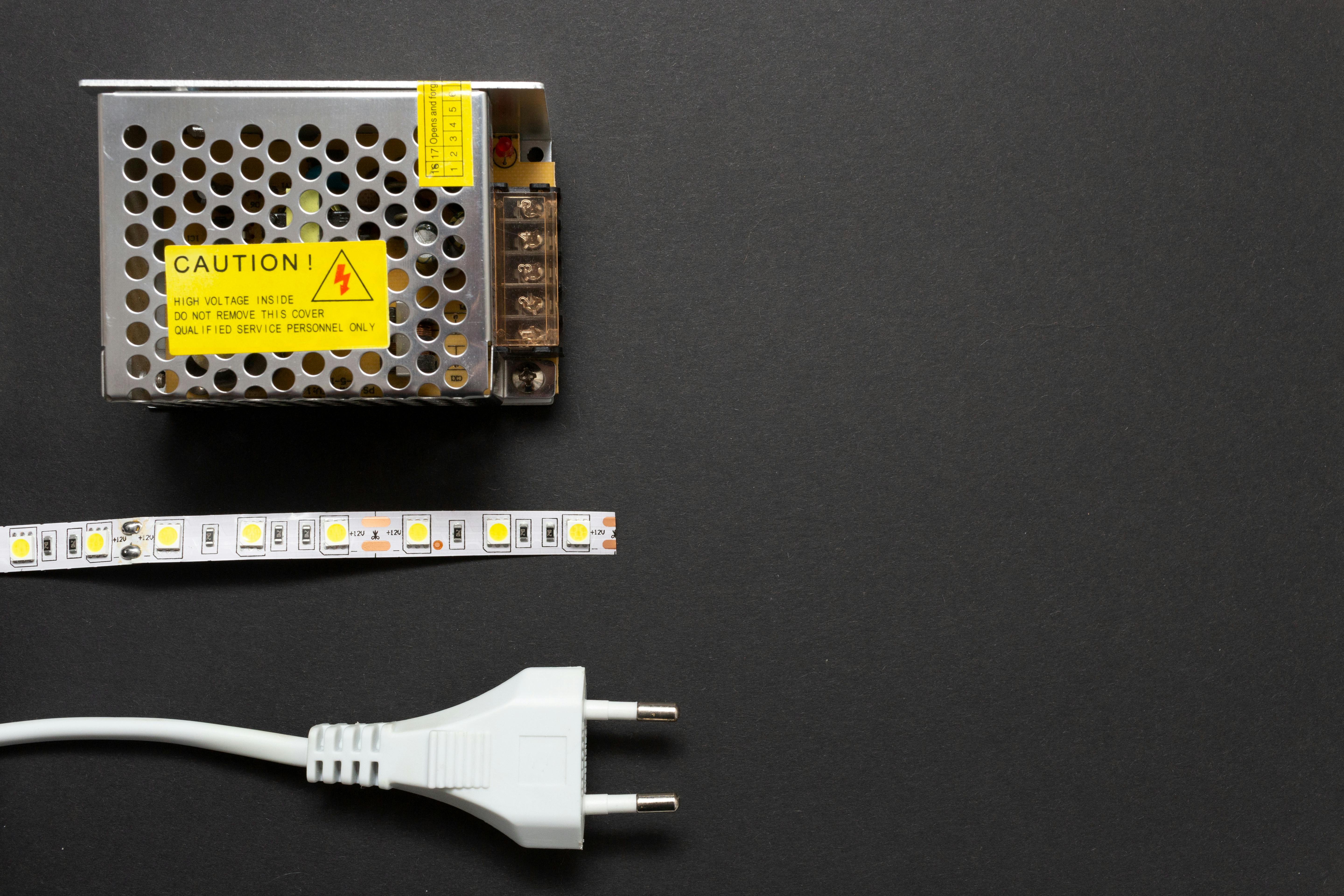 Een voordeel van het werken met 5V is dat één voeding volstaat voor de ledstrips en de microcontroller. Het vereiste wattage hangt vooral van de ledstrips af, want de controller verbruikt nauwelijks stroom. Volgens de fabrikant verbruikt de ledstrip bij 30 leds per meter maximaal 9 watt. Bij 60 leds per meter is dat het dubbele. Dat is heel ruim, zeker omdat zelden alle leds volop branden. We kiezen hier een 50W-voeding (5V/10A) voor vijf meter. Bij dit wattage kun je een soort laptop-achtige voeding kiezen. Voor tien meter is een 100W-voeding nodig (5V/20A). Dit zijn meestal voedingen met metalen behuizing.