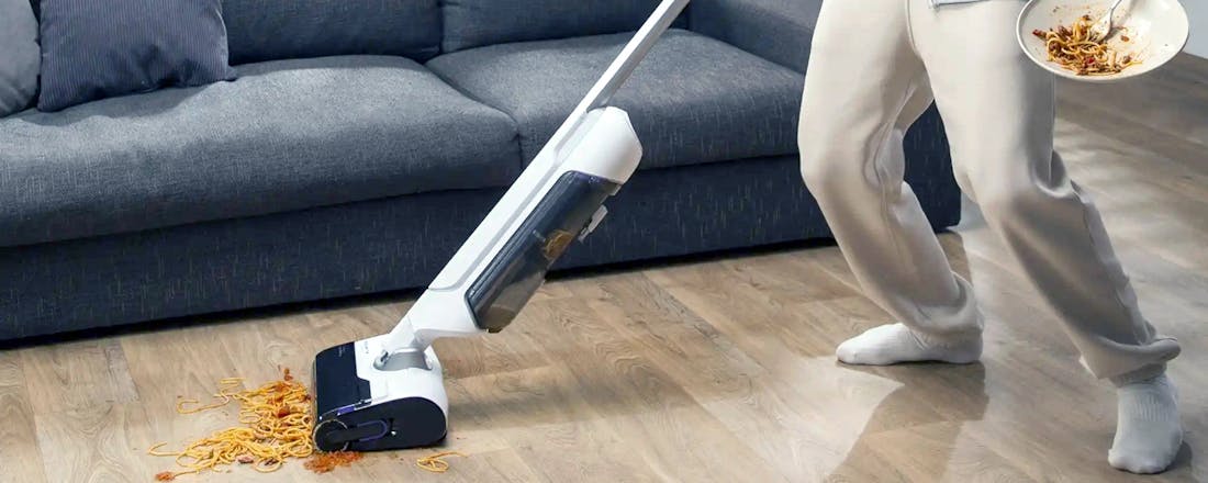 De Rowenta X-Clean 10 is een draadloze stofzuiger en dweil in één. Hij wordt geleverd met een basisstation waarin je hem oplaadt. Aan de hand van vier reinigingsfuncties neem je je (harde) vloeren onder handen. Hij dweilt met een draaiend rol en zit daarmee qua concurrentie in de hoek van Dyson, alleen beduidend voordeliger. Is het echt handig om tegelijkertijd te zuigen en dweilen? ID.nl test het uit.