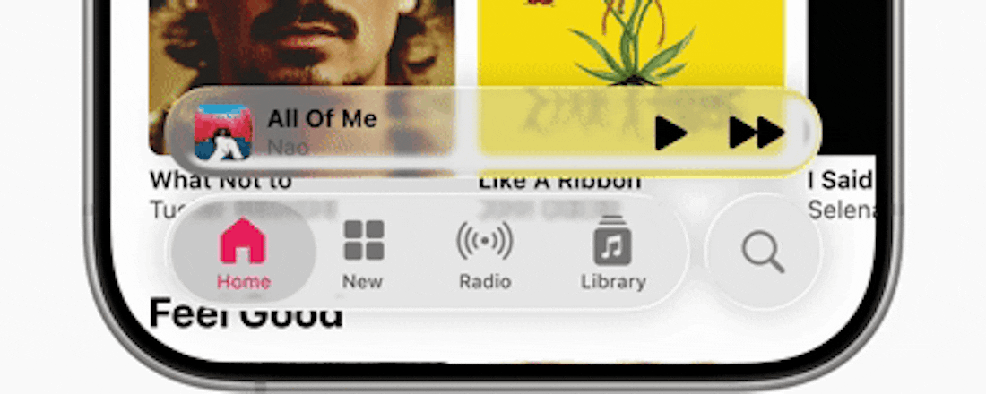 Liquid Glass is een nieuwe manier waarop Apple de vormgeving van knoppen, tabbladen, iconen en widgets neerzet. Alles krijgt een glasachtige uitstraling: halfdoorzichtig en met kleuren die meekomen uit je wallpaper of de inhoud van een app. Het reageert bovendien vloeiend op beweging, omdat het beeld steeds in realtime wordt opgebouwd. Zo ontstaat een herkenbare stijl die op al je Apple-apparaten hetzelfde aanvoelt.