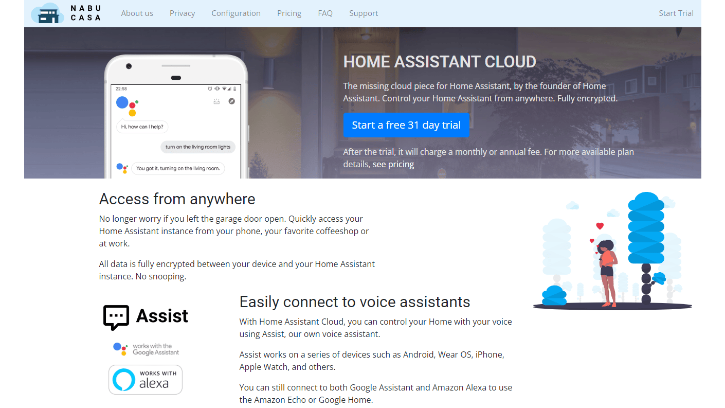 Bijna alles in Home Assistant is gratis, behalve veilige wereldwijde toegang en integratie met een spraakassistent zoals Google Assistant of Alexa. Wil je deze mogelijkheid gebruiken, dan heb je het Home Assistant Cloud-abonnement nodig, dat 75 euro per jaar kost.