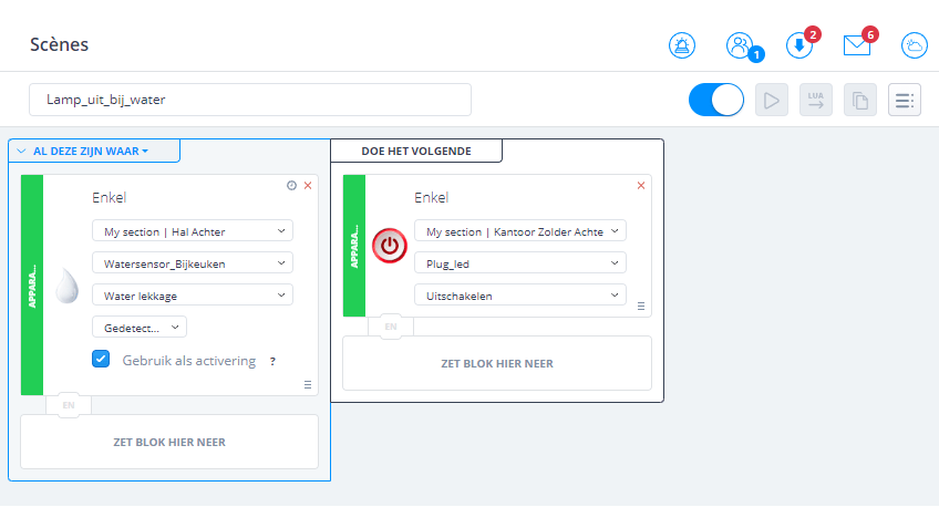 De interface is helder en werkt soepel. De app voldoet ook, al biedt hij minder opties dan de webinterface. Automatiseringen maak je of met kant-en-klare scènes of handmatig door zelf op een visuele manier apparaten te verbinden, en daar voorwaarden en acties aan te koppelen. Wil je echt diep gaan, dan kan dat via LUA-script.