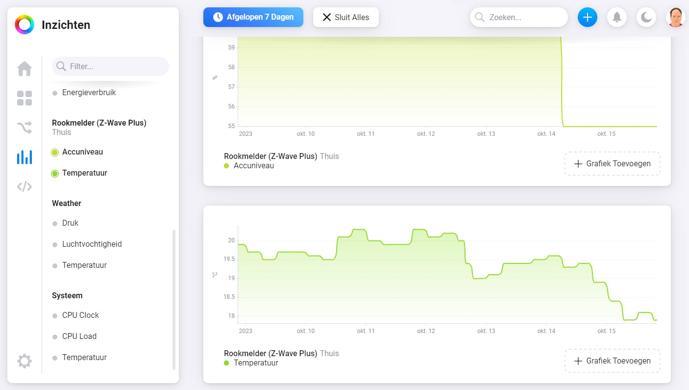 Om te automatiseren, is er keuze tussen de grafische ‘flows’ waarmee je triggers, voorwaarden en acties aan elkaar koppelt, en de scripttaal HomeyScript. Via Inzichten krijg je toegang tot de grafieken van alle verbonden apparaten, zoals het temperatuurverloop of energieverbruik van de laatste week of langer.