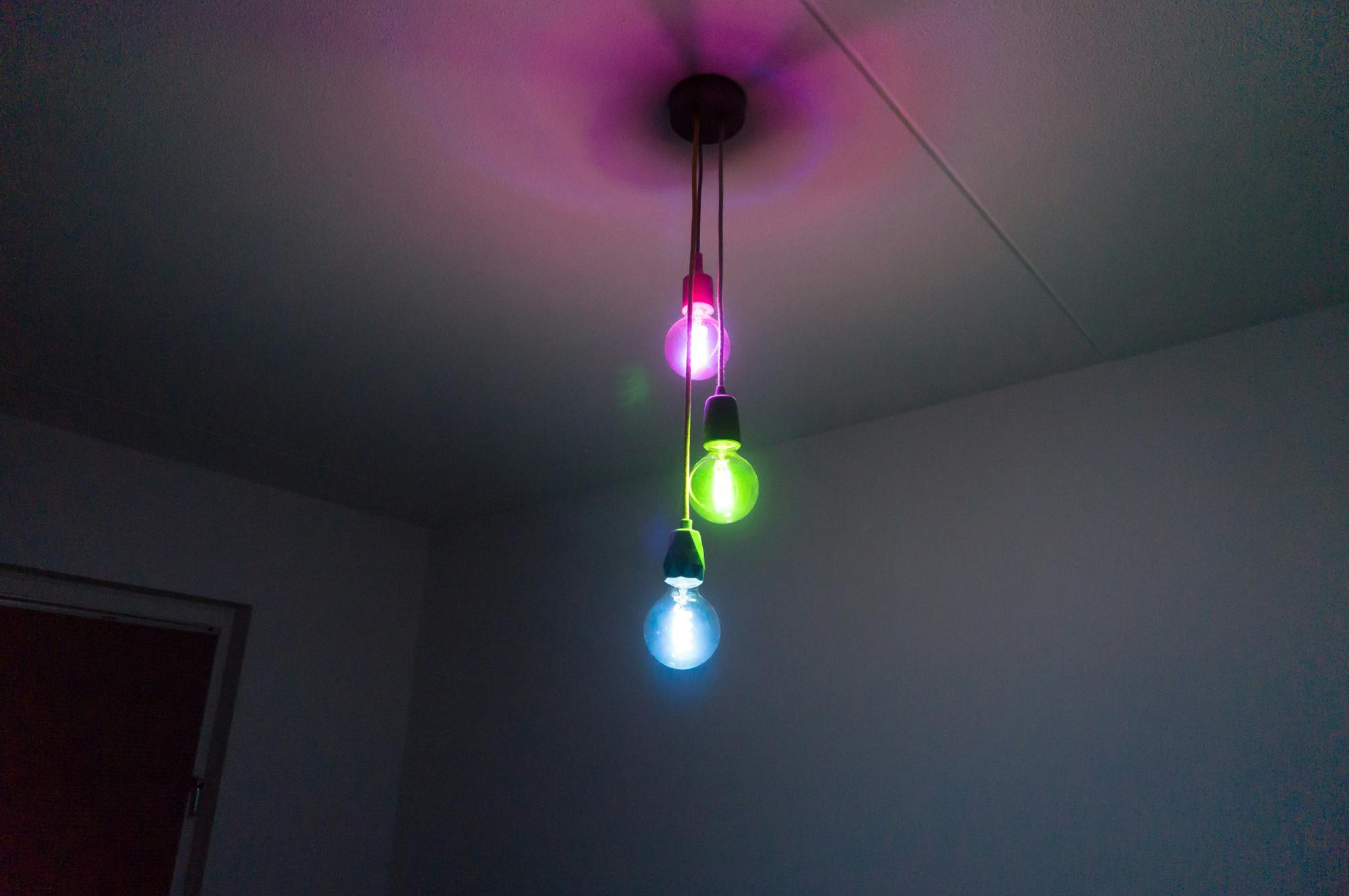 Paulmann vult dit gat op met filamentlampen met gekleurde verlichting in vier retroformaten: standaard gloeilamp, G125 (grote bol), G95 (bol) en ST64 (Edison). Wij kregen voor deze review drie G95-lampen die zo'n 30 euro per stuk kosten of 90 euro voor een set van drie stuks. Afhankelijk van het gewenste formaat kan dat iets goedkoper of duurder zijn.