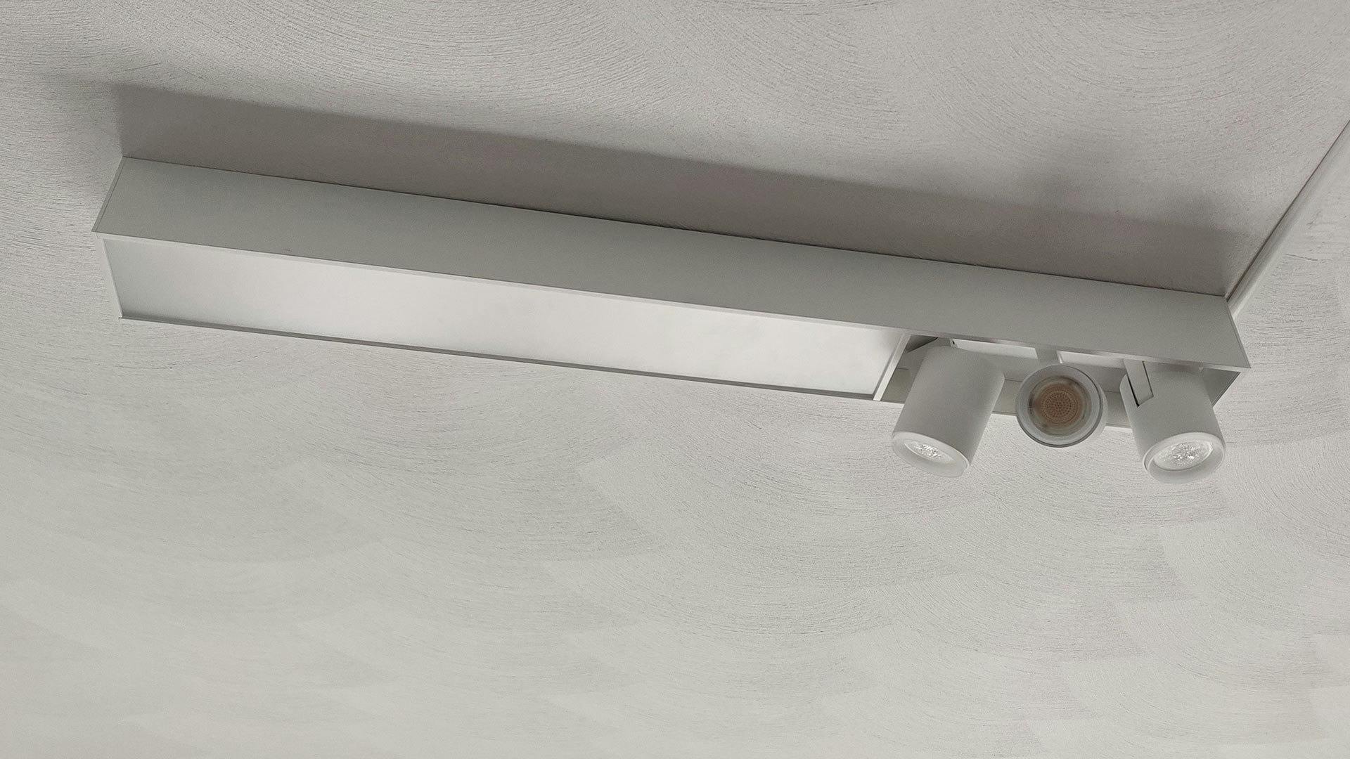 Voor deze review kijken we naar het model met een adviesprijs van 399,99 euro. Het beschikt over een lichtbalk en drie spotjes aan één zijde van de lamp. Het gevaarte voor aan het plafond is 87,3 centimeter breed, 11 centimeter diep en 14,3 centimeter hoog, en verkrijgbaar in de kleuren zwart en wit. Er is een maximale helderheid van 3650 lumen aanwezig, evenals ondersteuning voor Amazon Alexa, Apple HomeKit, Google Assistent, Homey, IFTTT, Samsung SmartThings en Nest.
