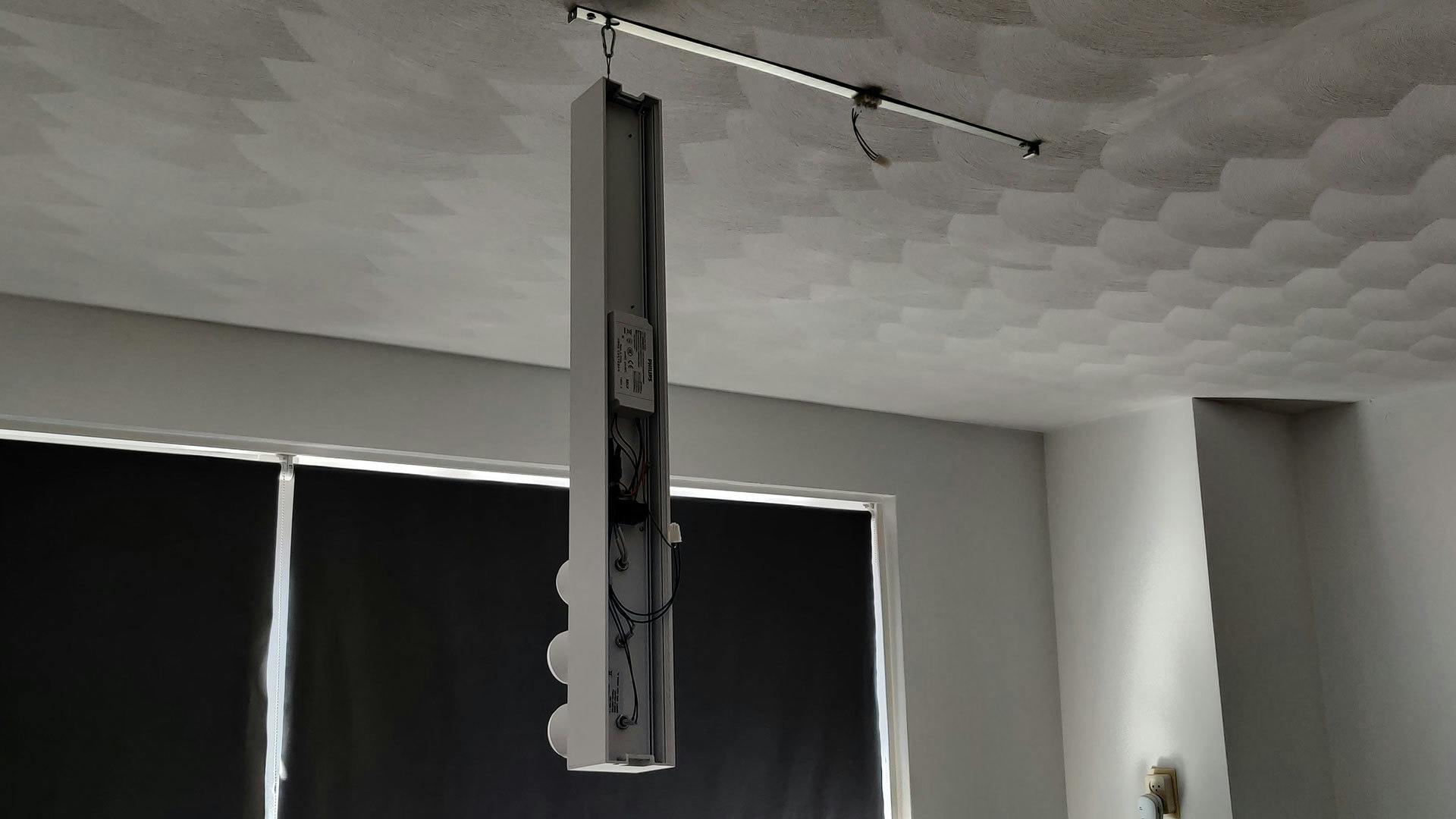 Met zo’n hoge adviesprijs mag je het één en ander verwachten van je product. Aan de montage en het veilige ophangsysteem ligt het in elk geval niet. De Philips Hue Centris is simpel en snel op te hangen met twee te boren gaten in het plafond. Daar bevestig je de bevestigingsbeugel aan. Dat metalen balkje is voorzien van een musketonhaak en een ander bevestigingssysteem, waardoor de bak echt niet naar beneden valt (tenzij heel het plafond naar beneden komt).