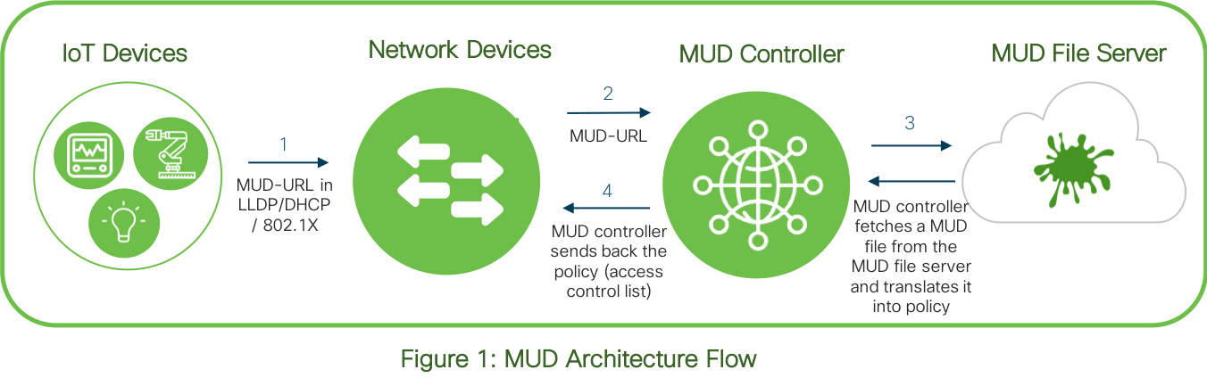 De ontwikkeling van MUD 2016: IETF begint aan standaardisering MUD 2019: IETF neemt MUD aan als standaard 2019: Cisco ISE 2.6 voegt ondersteuning voor MUD toe 2021: Het Amerikaanse NIST publiceert SP 1800-15 als gids voor MUD