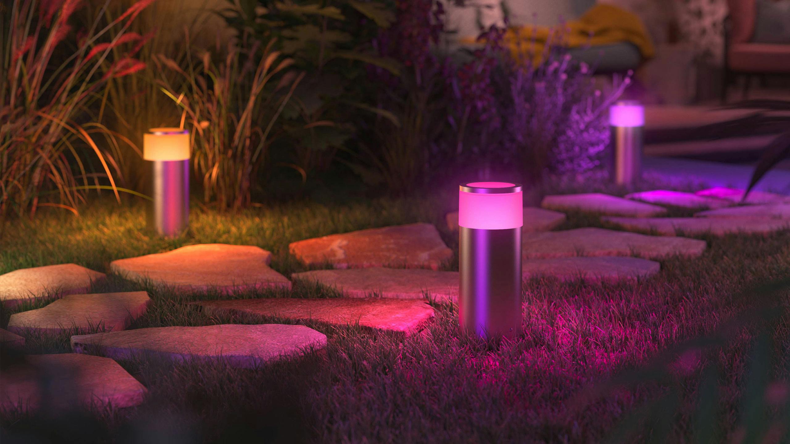 Het bekendste merk voor slimme verlichting in het algemeen is Philips Hue. Naast een uitgebreid binnenaanbod zijn er meer dan genoeg opties voor buitenverlichting. Dit merk biedt verschillende soorten schijnwerpers, muurlampen, spotlampen en buitenarmaturen aan. Daarnaast zijn er verscheidende sokkellampen (bedoeld als padverlichting), outdoor lightstrips en nog veel meer.