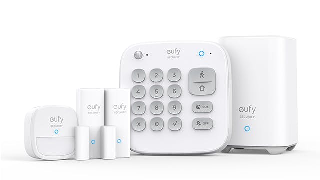Eufy is een merk van Anker en verkoopt in Nederland een 169 euro kostende 5-in-1-set. Die bestaat uit een basisstation, een bedieningspaneel, een bewegingssensor en twee setjes contactsensoren. Het basisstation verbindt de accessoires met elkaar en met je thuisnetwerk. Ook bevat het station een sirene die na de binnenkomstvertragingstijd afgaat bij onaangekondigd bezoek.