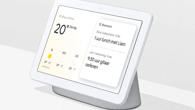 Je koopt de originele Nest Hub voor zo’n zeventig euro. Voor dat geld krijg je een luidspreker met 7 inch HD-scherm dat als fotolijstje dient en nuttige informatie laat zien. Het aanraakgevoelige display kan onder andere de tijd, het weer, feitjes en de instellingen van je domotica tonen. Je kunt er ook YouTube en Netflix op kijken.