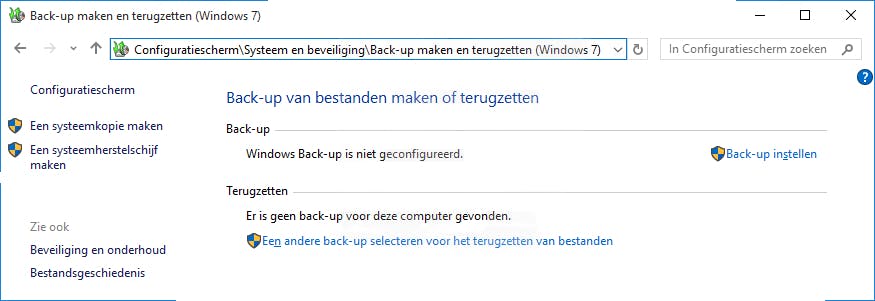 In Windows 10 gebruik je gewoon de optie Bestandsgeschiedenis