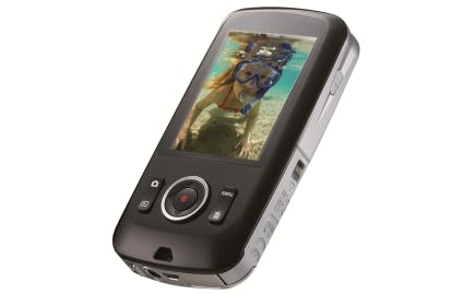 Net als de Kodak PLAYSPORT is ook de GE DV1 waterdicht, waarbij de DV1 zelfs tot vijf meter diep moet kunnen filmen. GE meldt op de verpakking dat de camera een valhoogte van anderhalve meter moet overleven. De behuizing komt in ieder geval stevig over en de achterkant is uitgevoerd in een hip kleurtje (oranje, groen, blauw of grijs). De lens is iets verzonken in de behuizing, waardoor bijvoorbeeld zandkorrels minder kans krijgen om krassen te maken. De beeldkwaliteit is natuurlijk het belangrijkste en die stelt helaas zwaar teleur. Het beeld is onscherp en binnen, maar vreemd genoeg ook buiten, verspringt de helderheid van het beeld constant. Er hangt verder een paarse gloed over het beeld. Vooral als we water filmen, zien we lelijke artefacten in het beeld. Geen aanrader dus, al is dit wel de camera met de laagste straatprijs van de geteste modellen.
