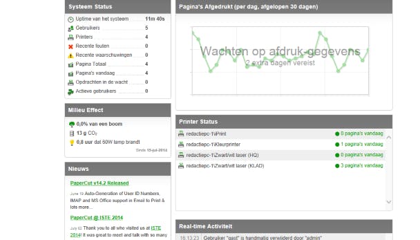Heb je een goed uitgebouwd thuisnetwerk met één of meer gedeelde printers en wil je graag enig zicht hebben op wat en hoeveel er door wie wordt afgedrukt? Tools als de gratis PaperCut Logger of de krachtigere variant PaperCut NG (gratis tot 5 gebruikers) kunnen uitkomst bieden. De laatste beheer je via een webinterface. Deze tool haalt automatische alle gebruikers op en je kunt per gebruiker instellen hoeveel die per printer maximaal mag verbruiken. Vanuit een webinterface krijg je dan een mooi overzicht van het actuele gebruik en je kunt zelfs de individuele printopdrachten zien. Je kunt het rapport naar diverse formaten exporteren, zoals pdf, csv en html.