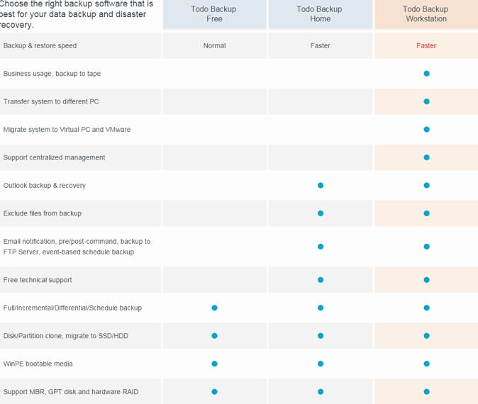 Je vindt de gratis versie van EaseUS Todo Backup hier. Om een goed overzicht te krijgen van de belangrijkste mogelijkheden van dit gratis pakket klik je Features aan. We lichten een paar dingen uit: je leest hier bijvoorbeeld dat het programma 'hot backup' ondersteunt waarbij ook bestanden die nog in gebruik zijn mee in de back-up kunnen, dat ook sector-by-sector-backups mogelijk zijn zodat je zeker bent van een compleet identieke schijfkopie, dat je kunt kiezen tussen incrementele en differentiële back-ups, dat schijfherstel ook mogelijk is als Windows zelf het niet meer doet en dat je bestanden selectief kunt terugzetten uit een schijfkopie.