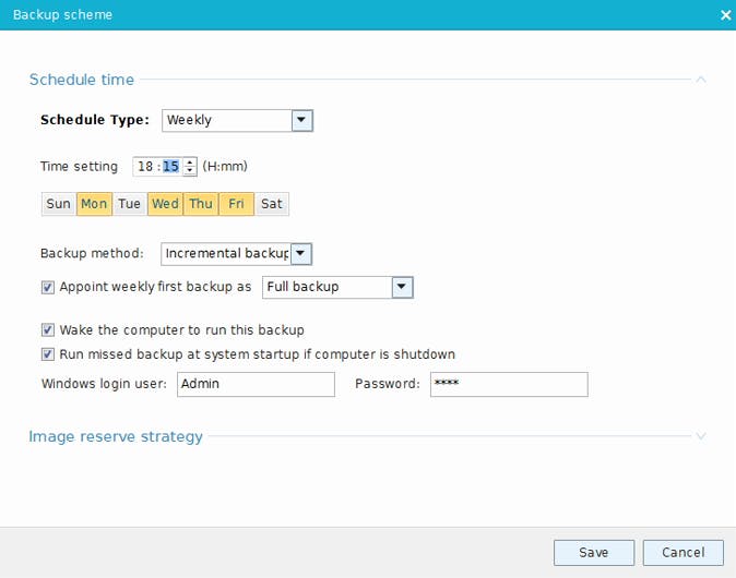 Wil je deze back-up inplannen - en dus regelmatig uitgevoerd zien - klik dan op Schedule: off. Geef de frequentie voor de back-up aan (Daily, Weekly of Monthly) en stel in wanneer je die precies wilt laten uitvoeren. Je krijgt hier nog de keuze tussen een Full, Incremental en Differential backup (zie kader 'Back-uptypes') en verder kun je onder meer aangeven of de pc - voor zover mogelijk - automatisch moet ontwaken om de geplande taak uit te voeren. Ook de optie Image-reserve strategy is nuttig: hier kun je instellen of je oudere back-upimages wilt bewaren en zo ja, hoeveel. Alle wijzigingen leg je telkens vast met de knop Save.
