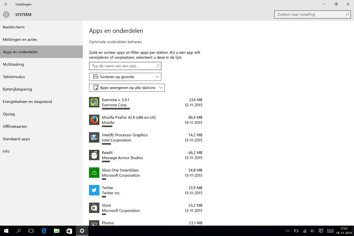 Je kunt natuurlijk door je Program Files heen om programma's te verwijderen, of via die onoverzichtelijke warboel in het Configuratiescherm, maar Windows 10 heeft nóg een extra handige optie voor het beheren van je programma's. Die zit in de 'Instellingen', en laat in één oogopslag zien welke programma's het meeste ruimte innemen op je harde schijf.