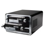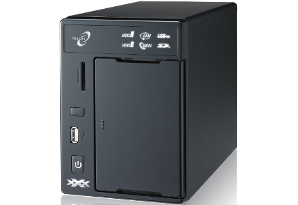 Met de N2200XXX probeert Thecus Synology en QNAP bij te blijven en meer dan voorheen slaagt het daarin. Ditmaal klopt namelijk niet alleen de buitenkant van de NAS, maar is ook de software van voldoende kwaliteit om echt met de twee topmerken te kunnen concurreren. In een prachtige metalen behuizing, met hot swappable schijven die, anders dan bij QNAP, met een sleutel te vergrendelen zijn. Een grote slag heeft Thecus gemaakt met de modules: uitbreidingen die na de NAS-installatie apart geïnstalleerd kunnen worden en functionaliteit toevoegen. Thecus heeft er inmiddels een groot aantal waaronder een tool voor tweerichtingsgebruik van de usb-poort, downloadmanager, IP-camera-ondersteuning, MySQL, Piczza fotoservice, Rsync. Behalve SD leest het mediaslot in de Thecus ook SDHC en MMC geheugenkaartjes. Opvallend is het PCI-Express slot (halve hoogte) dat via de achterzijde van de NAS toegankelijk is. Standaard is het onbenut, maar Thecus levert een usb3.0-uitbreidingskaart die deze poort gebruikt. De interface van de N2200XXX is Engelstalig en erg druk, maar biedt wel alle opties. De Thecus is snel en heeft met een stevige Atom-processor en 1 GB geheugen ook voldoende resources om veel werk te verzetten. Thecus levert ook nog een Personal Edition van Acronis True Image back-upsoftware mee en een cd-rom met de Twonky Media mediaserver. Met de N2200XXX nestelt Thecus zich nadrukkelijker dan ooit in de top van het NAS-segment.