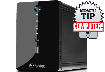 De Fanctec valt direct op door zijn kleine formaat. Toch passen er twee schijven in. De installatie daarvan is volledig schroefloos, de schijven worden vastgezet door de voorzijde van de behuizing los te halen en na het plaatsen van de schijven, weer vast te klikken. Een mooi concept, maar ook wat minder stevig. Aanvankelijk maakte een van de schijven geen goed contact waardoor deze niet beschikbaar was. De meegeleverde installatiesoftware beperkt zich tot het configureren van RAID en heeft een zoekprogramma om de NAS in het netwerk op te sporen. De voor de installatie benodigde firmware staat ook op de cd-rom. De Fantec is te beheren via een gelikte op Flash-gebaseerde webinterface. Binnen de webbrowser biedt deze onder meer slepen-en-neerzetten bestandsbeheer, een bittorent en ftp/http-downloader, een fotoviewer en mediaspeler met ondersteuning voor mp3, wav, wma, asf, wmv en flv. Muziek of filmbeelden afspelen vanaf de NAS is dus al mogelijk door via de browser op de NAS in te loggen. Er kunnen meerdere gebruikers toegang krijgen tot de NAS, maar de mogelijkheid verschillende rechten uit te delen is beperkt, terwijl werken met groepen helemaal niet mogelijk is. Een nadeel van de Fantec is het lawaai dat de koeling produceert, dat is teveel om de NAS in de directe werkomgeving te plaatsen.