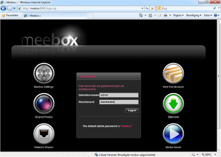 De Meebox van Looqs is onderdeel van een serie van multimedia-apparaten met de Meeframe elektronische fotolijst en de Meeceiver mediaspeler. Hoewel bijna iedere NAS in de test een versie van Linux als besturingssysteem heeft, is het Linux-gehalte bij de Looqs hoger dan bij de anderen. In de handleiding staat bijvoorbeeld uitgelegd hoe middels SSH een commandoprompt op de NAS geopend wordt om 'taken uit te voeren die niet uitgevoerd worden door de admin-interface'. De interface biedt keuze tussen basisinstellingen of een geavanceerde weergave. Lastig is dat bij het overstappen naar een ander onderdeel in de interface, deze telkens in een nieuw venster wordt geopend. De Looqs is aanvankelijk een lastige klant. Eerst vindt de setup-software het eigen standaard admin-wachtwoord niet goed, daarna lukt het niet de web- en databaseservices te starten die nodig zijn voor de meer geavanceerde functies van de Meebox. Een herinstallatie van de firmware brengt uitkomst. De uitbreidingen van de Meebox zijn Extplorer voor bestandstoegang op afstand, Gallery van Menalto voor de weergave van foto's, MediaWiki, phpBB webforum, PHPMyAdmin en WordPress. Er kan met één gebruikersnaam en wachtwoord op al deze onderdelen worden ingelogd, maar veel verder lijken de opensource-pakketten niet aangepast. Ze halen dan ook niet de kwaliteit en gebruiksvriendelijkheid van gelijksoortige componenten bij bijvoorbeeld QNAP of D-Link. Omdat ook de handleiding niet op de verdere werking ingaat, komt het plezier dat u van de Looqs zult hebben, vooral aan op eigen initiatief en liefhebberij.