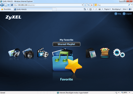 De webinterface van de ShareCenter werkt met grote symbolen en heeft een pagina waarop de eigen meest gebruikte functies geplaatst kunnen worden.
