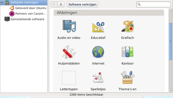 Zo'n tien minuten later is de installatie achter de rug en mag je de computer herstarten. Als alles goed is, verschijnt even later de grafische interface van Qimo. Een zevental applicaties kun je al meteen opstarten via de opvallende knoppen onder in beeld. Andere applicaties vind je via de menuknop linksboven. Met name de opties Educatief en Games zijn specifiek op kinderen gericht. Toegegeven: een aantal applicaties richt zich op Engelstalige kinderen, maar er zijn ook programma's waarvoor geen enkele talenkennis is vereist. Andere applicaties toevoegen kan natuurlijk ook. Dat kan (bijvoorbeeld) via Menu / Systeem / Ubuntu Softwarecentrum / Software verkrijgen, waar je dan het gewenste thema (zoals Audio en video, Educatief, Grafisch, Spelletjes) opent, een applicatie selecteert en op de knop Installeren drukt.