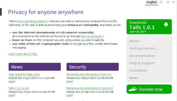 Download alvast het iso-bestand en brand het naar een dvd, waarmee je vervolgens je oude computer opstart. Let wel, Tails is een echt 'live' systeem, wat inhoudt dat je het compleet vanaf de dvd draait. Je zou dit in principe dus ook vanaf je eigen computer kunnen doen, maar het is altijd nog wel veiliger om hiervoor een verder ongebruikte pc in te zetten, of in elk geval een pc waarop geen belangrijke data staan.