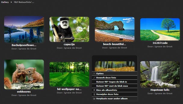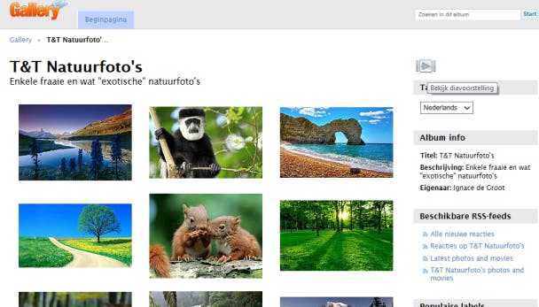 De interface is momenteel nog Engelstalig, maar dat kun je aanpassen. Meld je via Login (linksboven) aan, open het menu Admin en kies Settings / Languages. Plaats (alleen) een vinkje bij Nederlands en stip hier de optie Default language aan. Bevestig met Update Languages. Tijd nu om een eerste album te creëren en dit van enkele foto's te voorzien. Klik linksboven op Terug naar de Gallery en selecteer Toevoegen / Voeg een album toe. Voorzie dit nieuwe album van een gepaste titel, beschrijving, mapnaam en url. Druk op de knop Maak en klik vervolgens op Voeg foto's toe / Selecteer foto's. Verwijs naar je fotobron (een usb-stick bijvoorbeeld) en haal de foto's op. Die kun je desgewenst meteen al labelen via het veld Voeg steekwoorden toe aan alle geüploade bestanden. Zodra je met Gereed bevestigt, verschijnen de foto's in je album. Vanuit het menu Album opties kun je het album nog op allerlei manieren aanpassen. Ook leuk: rechtsboven vind je een knopje waarmee de foto's zich in de vorm van een diashow laten bekijken.