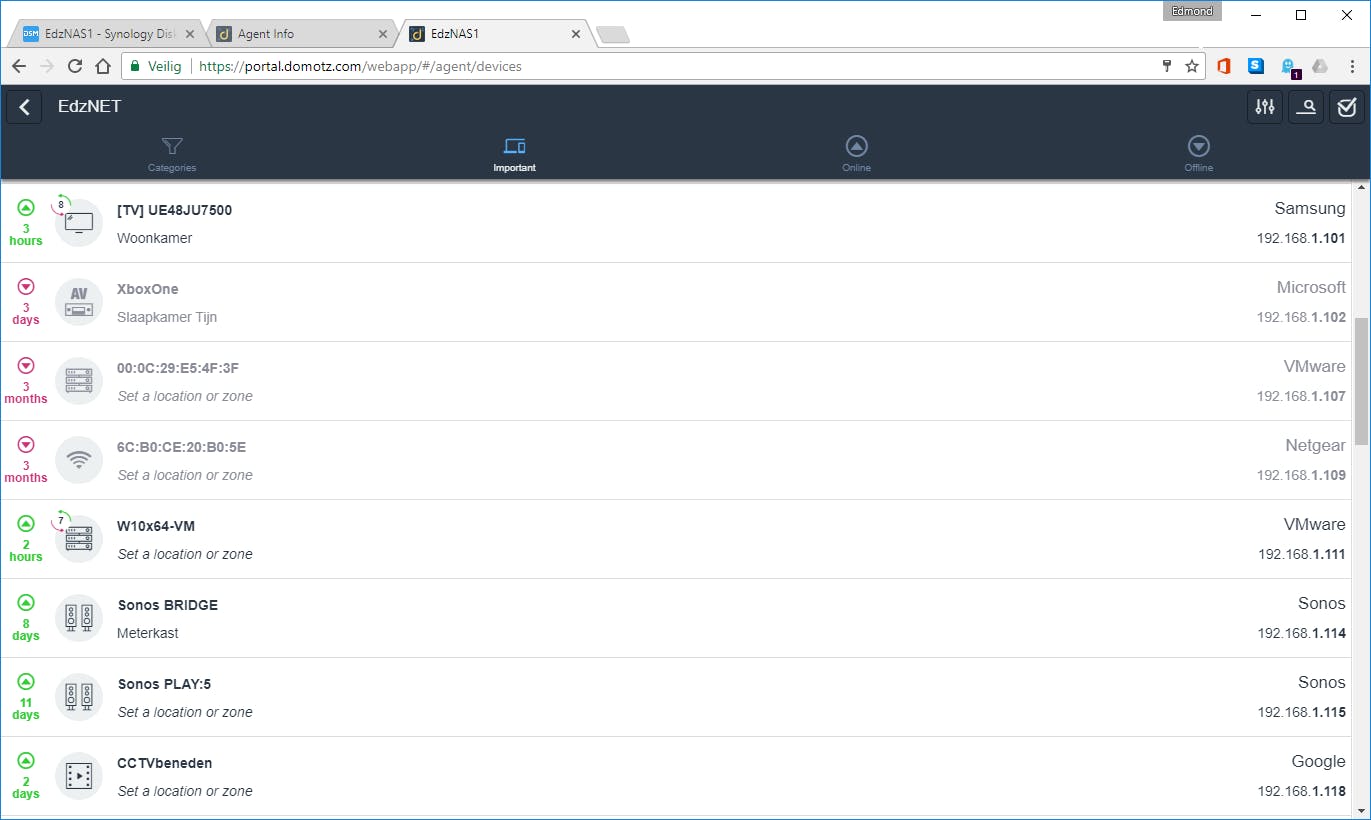 Om dezelfde reden dat een nas zeer geschikt is voor home-automation, is het ook een prima netwerkbewaker. Wil je weten welke apparaten er allemaal op je thuisnetwerk komen, hoe laat ‘s avonds de iPad nog wordt gebruikt of de televisie uitgaat? Met Domotz installeer je een netwerkmonitor op de nas. Het is bovendien geschikt om vluchtige IoT-apparaten die het huis in/uit gaan te traceren en hun aanwezigheid vast te leggen. Je kunt met de bijbehorende Domotz-app voor iOS en Android bovendien altijd en overal gealarmeerd worden. Enig nadeel: voorlopig alleen voor QNAP en Synology en het kost 36 euro per netwerk per jaar.