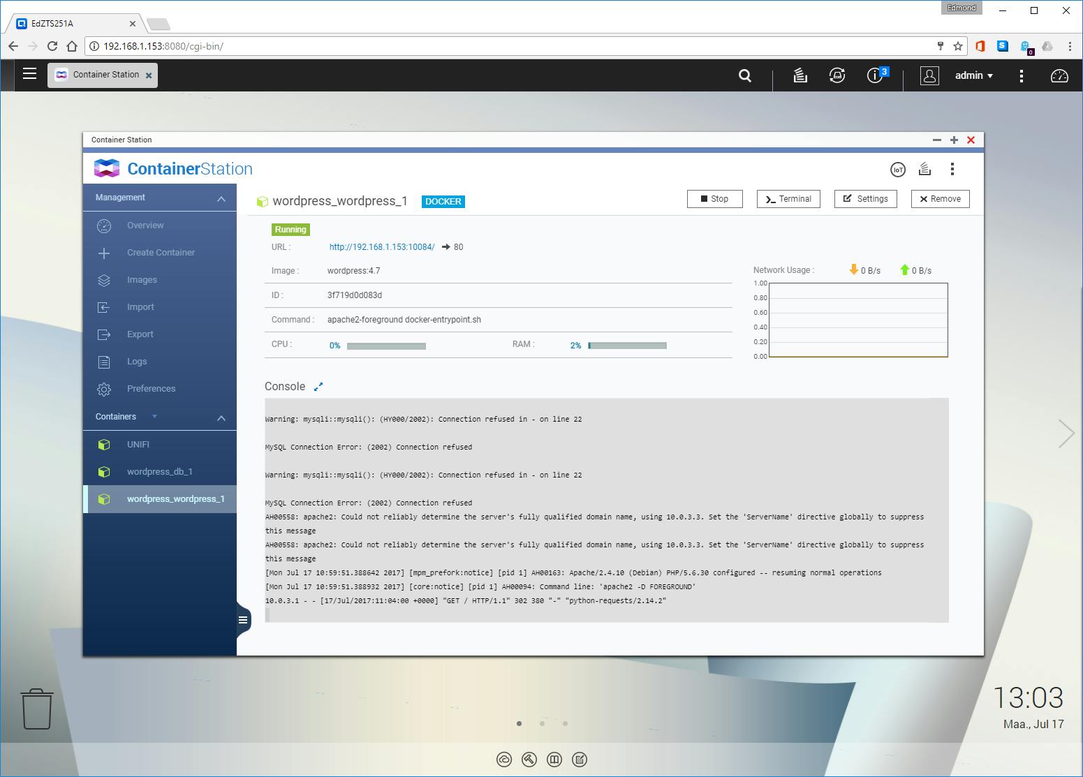 LXC en Docker zijn twee ‘lichtgewicht’ virtualisatiemethoden waarmee een volledig geïsoleerd Linux-systeem op de nas kan worden geactiveerd. De virtuele machine is in dit geval geen lege machine die je helemaal vanaf de grond moet installeren, maar een kant-en-klare package met bijvoorbeeld een Linux-distributie, managementsoftware voor je netwerk of een WordPress-website compleet met cms. Om deze handige mogelijkheid te gebruiken, installeer je eerst Container Station of Docker en kiest dan binnen deze extra toepassing, voor de container die je wilt gebruiken. Deze wordt daarna automatisch voor je gedownload en een paar klikken later ben je al live.