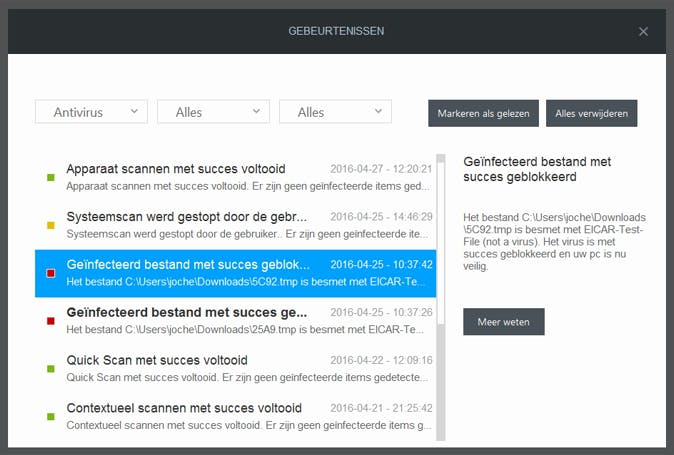 Tip 01 In dit geval heeft onze virusscanner het testvirus goed herkend.