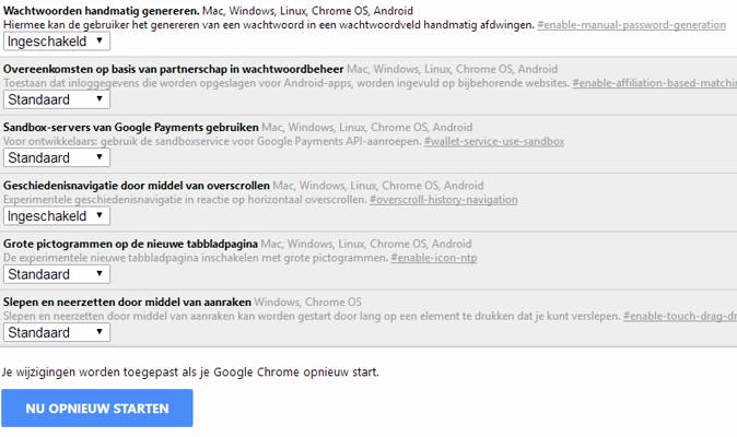 Goede wachtwoordmanagers zijn bijvoorbeeld KeePass, LastPass en 1Password. Een optie is ook om de ingebouwde wachtwoordmanager van je browser te gebruiken. Chrome en Firefox bevatten eveneens mogelijkheden om wachtwoorden op te slaan, maar alleen Chrome kan veilige wachtwoorden genereren. Hiervoor ga je naar chrome://flags en zoek je naar de optie Wachtwoorden handmatig genereren. Zet die op Ingeschakeld en klik op Nu opnieuw starten. Als je nu met de rechtermuisknop op een wachtwoordveld klikt, kun je voor de optie Wachtwoord genereren kiezen.