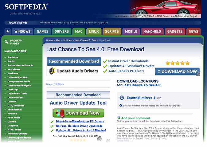 Tip 07 Een voorbeeld van een donker patroon op darkpatterns.org, waarbij de enige echte downloadknop niet het woord 'download' bevat.