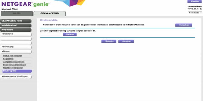 Tip 09 In een nieuwe NETGEAR-router ga je naar Geavanceerd / Beheer / Router-update.