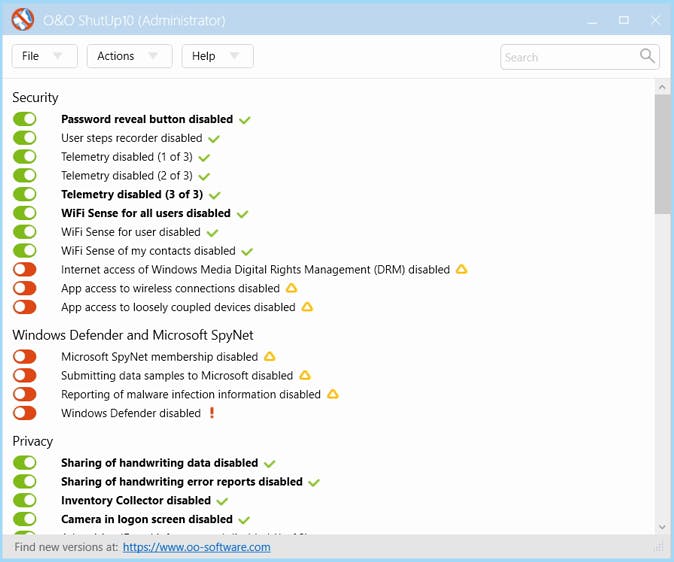 Windows 10 stuurt nogal wat gegevens door naar Microsoft over hoe je je computer precies gebruikt. Microsoft stelt dat het deze gegevens anonimiseert en dat het goed met je privacy omgaat. Goed omgaan met je privacy zou echter zijn om je de keuze geven of je de gegevens wilt uploaden of niet. In Windows 10 Pro kun je het verzamelen van gegevens uitzetten via de Windows-registereditor en door bepaalde services uit te schakelen. Een handigere en snellere oplossing is er in de vorm van O&O ShutUp10 dat voorkomt dat er nog langer gegevens verzonden worden. Na het uitvoeren klik je op Actions en kies je voor Apply all recommended settings om het spioneren van Windows 10 een halt toe te roepen. Let op dat soms sommige 'Modern UI'-apps niet goed meer kunnen functioneren na het gebruik van de app.