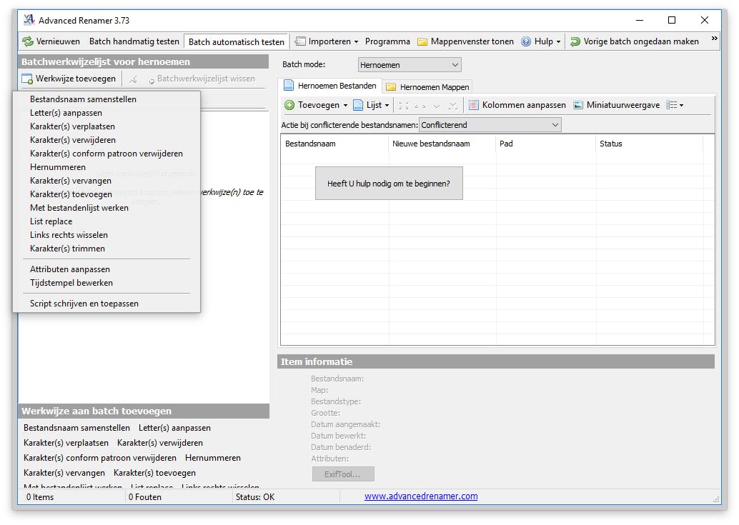 Als je weleens meerdere bestanden een andere naam wilt geven, dan is dit met de Windows Verkenner een langdurig proces. Met AdvancedRenamer gaat dit een stuk sneller. Naast karakters aan een bestaande bestandsnaam toevoegen, kun je ook bepaalde karakters verwijderen, letters en cijfers op een andere plek neerzetten of bepaalde karakters van de bestandsnaam afhalen. Vervolgens zie je in het rechtervak hoe de nieuwe bestandsnamen eruit gaan zien. Eventueel kies je een andere map om de bestanden op te slaan. Onderaan vind je nog extra eigenschappen van het geselecteerde bestand.