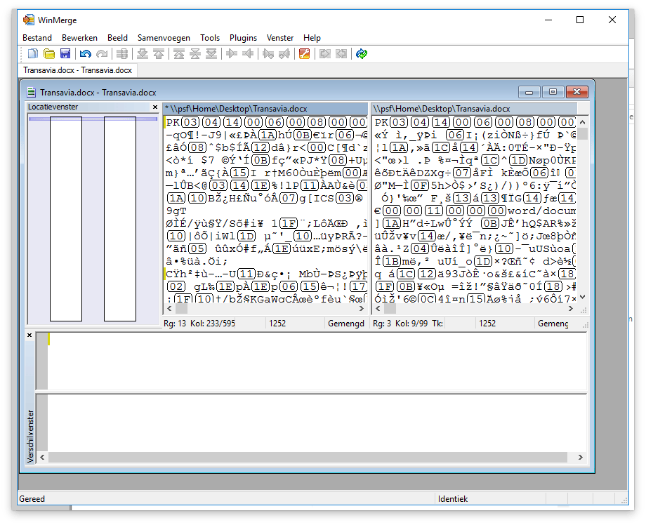 Als je bestanden of mappen wilt vergelijken met elkaar, bijvoorbeeld omdat je per ongeluk een bestand hebt verwijderd en je het met je reservekopie wilt vergelijken, installeer dan WinMerge. Het is handig om tijdens de installatie het vinkje voor Activeer integratie in contextmenu van Verkenner te laten staan. Klik in het programma op Bestand / Openen en kies een bestand of map voor zowel het linker- als het rechtervenster. Verschillen tussen beide vensters worden aangegeven met gele streepjes. WinMerge levert je enorm veel opties om bestanden samen te voegen of delen naar het linker- of rechtervenster te verplaatsen.