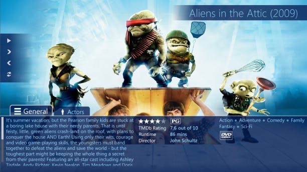 Windows Media Center heeft al een fraaie interface, maar het kan natuurlijk altijd beter. Media Browser verzamelt al uw media en presenteert het op een fraaie manier. Na de installatie krijgt u een configuratiewizard waarin u kunt aangeven waar uw media zich bevinden. U vindt Media Browser na installatie terug in het hoofdmenu van Windows Media Center. Media Browser toont uw mediabibliotheek op een fraaie manier. Als u op bijvoorbeeld een film klikt, dan krijgt u een mooie pagina in beeld waarop u informatie van IMDb ziet.