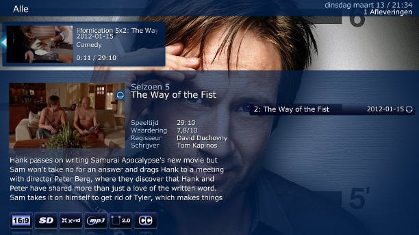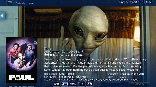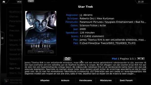 U kunt zelf kiezen van welke dienst filminformatie wordt gehaald. Voeg een dienst toe via Systeem / Add-ons / Add-ons downloaden / XBMC.org Add-ons / Filminformatie. Selecteer de gewenste dienst en klik op Installeren. Voeg uw films toe via Video's / Video's toevoegen. Kies de juiste map en klik op OK. Kies bij Deze map bevat voor Speelfilms en selecteer vervolgens de zojuist geïnstalleerde filminformatiedienst en klik op OK. U vindt uw film nu onder Video's / Speelfilms. Klik met rechts op een film voor filminformatie via de gekozen dienst.